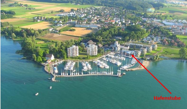Kein Segelclub diesmal, sondern die Gemeinde Bottighofen, die uns ihre Hafenstube mit Terrasse für unser Fest zur Verfügung stellt.