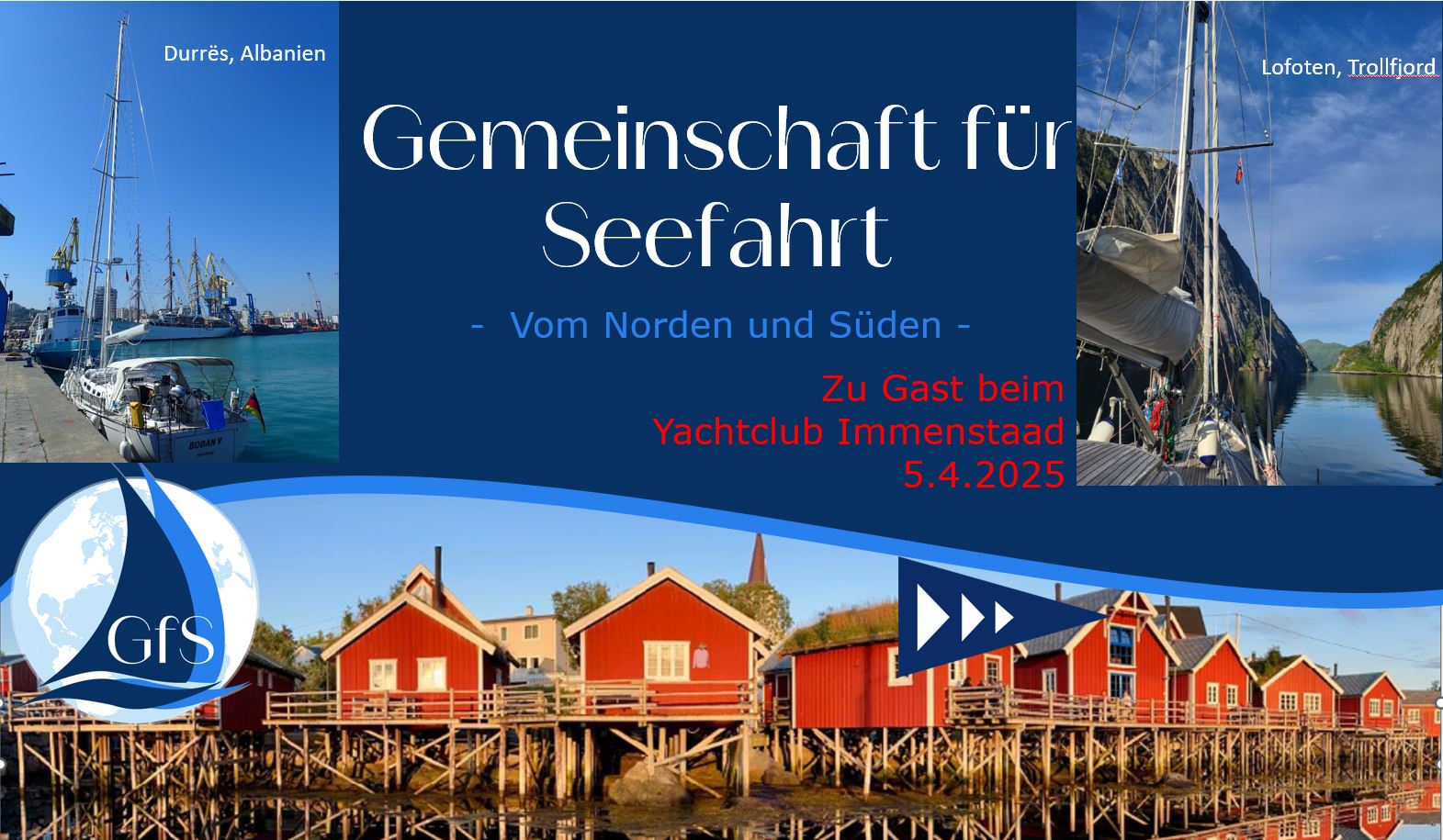 Der Yachtclub Immenstaad hat anlässlich seiner Generalversammlung am 5.4.2025 die GfS zu einem Vortrag über unsere Törns im Norden und Süden geladen. Gerne sind wir dieser Einladung gefolgt.